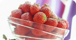 In dit bontgekleurde frisse dessert verwerk je allerlei soorten zacht fruit die in deze tijd in overvloed en dus goedkoop voorhanden zijn. Sla je slag als de markt koopmannen gaan opruimen. AARDBEIENSOEP MET MELOEN EN BRAMEN 750 gram aardbeien 12 bramen 12 meloenbolletjes 300 ml sinaasappelsap 12 peperkorrels (liefst roze, anders zwart) 4 bollen citroenijs 4 takjes munt 4 amandelkrullen eventueel poedersuiker Was aardbeien, verwijder kroontjes. Bewaar 12 gave kleine exem-plaren en pureer de rest met sinaasappelsap kort met de staafmixer of in de blender. Was munt, bewaar 4 mooie topjes voor de garnering. Snij 4 blaadjes in heel smalle reepjes, roer door de aardbeiensoep. Kneus peperbolletjes en voeg toe. Proef of het zoet genoeg is. Meng er zo nodig een paar eetlepels poedersuiker door. Schep de rode soep in diepe borden en leg een grote bol sorbetijs in het midden. Schik meloenbolletjes en bramen eromheen. Leg de munttopjes boven op het ijs en serveer er amandelkrullen bij. .